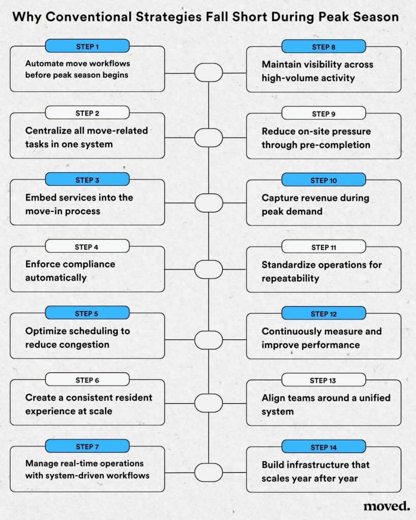 Without the right infrastructure, peak season becomes chaotic. Teams are overwhelmed, processes break down, and resident experience suffers.