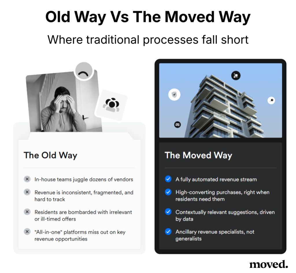 Revenue loss is the more visible side. Service transactions move outside the ecosystem, and the property has no role in them. Movers are booked elsewhere. Utilities are set up independently. Insurance is purchased through external providers.